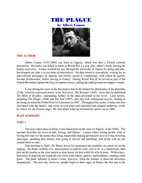 Translated from the french by justin o'brien. Camus, albert (1942), the myth of sisyphus, j.o'brien. The myth of sisyphus, as most of camus's works, describes the miserable life of a lonely hero facing the cruelty of life, alone out of any loving relationship and family. It serves as an introduction to camus' philosophy of the gods had condemned sisyphus to ceaselessly rolling a rock to the top of a mountain, whence the stone would fall back of its own weight. For me the myth of sisyphus marks the beginning of an idea which i was to pursue in the rebel.